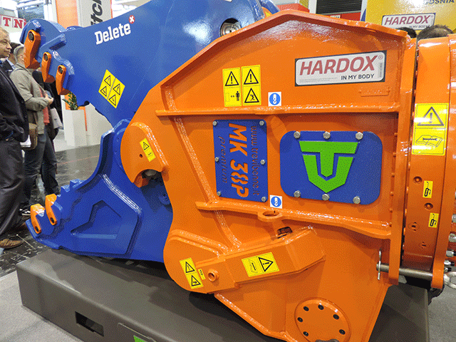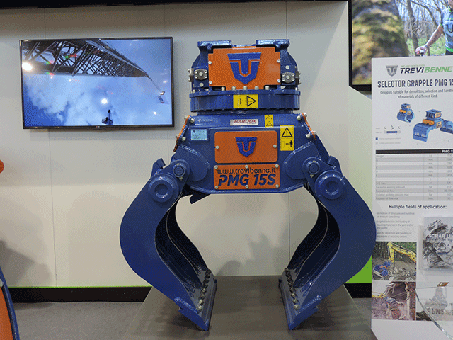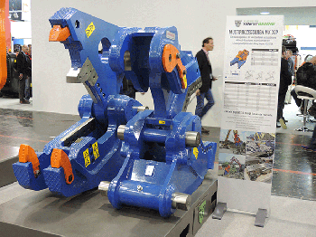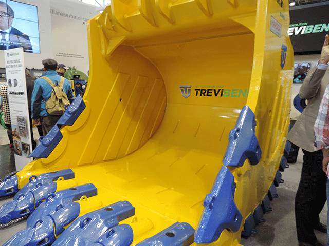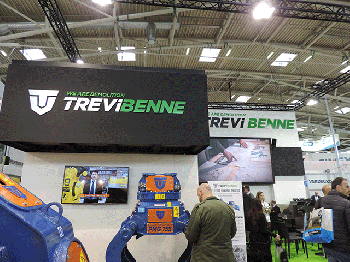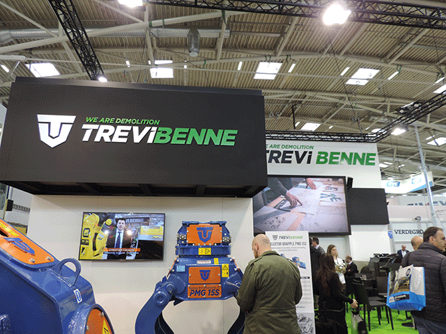 In occasione del bauma, allo stand Trevi Benne, si potevano toccare con mano un’ampia proposta della produzione della casa vicentina. Tre le attrezzature in primo piano la cesoia per metallo Marilyn CS 55RS rivolta ai moderni cantieri di demolizione industriale e ai professionisti del riciclaggio dei rottami e materiali di natura ferrosa; il frantumatore Multi Kit MK 38P dotato di valvola moltiplicatrice di potenza Impact Booster; una Benna Heavy Duty Classe T.100 modello HDVX indicata per impieghi gravosi.