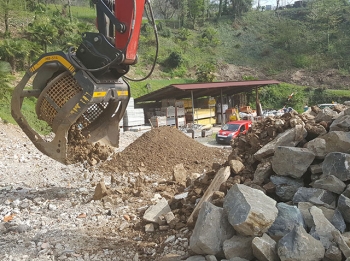 Dalla Svizzera l’azienda Fabris Scavi racconta il suo cantiere dove lavorano una benna frantoio e una vagliante MB Crusher.