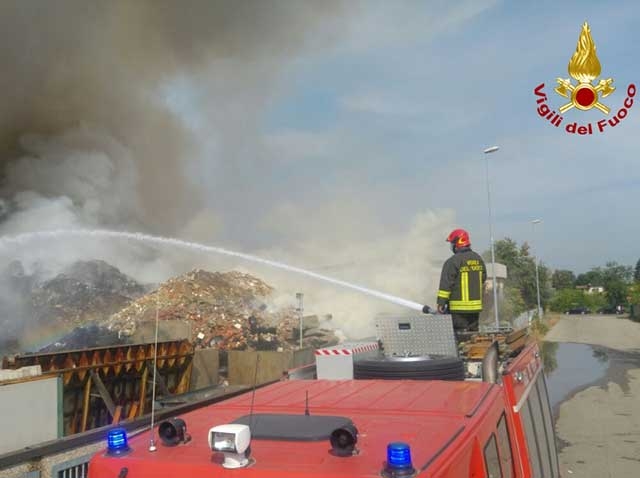 I Vigili del Fuoco hanno continuato a smembrare l'ingente mole di rifiuti eterogenei con benne e pale meccaniche. Ogni bennata, abbondantemente raffreddata e spenta con getto di acqua, veniva successivamente spostata in un'area sicura del deposito. Queste operazioni hanno prodotto molto fumo che si disperdeva senza salire in quota e formare un vero pennacchio.