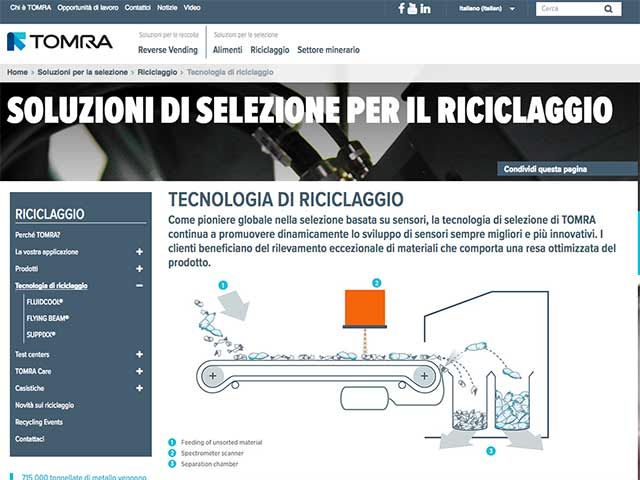 Il sito web di TOMRA parla italiano
