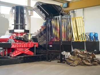 Un camion da miniera è in grado di trasportare oltre 350 tonnellate di materiali e per farlo monta pneumatici mastodontici, che misurano anche 4 metri di diametro per 1,80 metri di larghezza e 5,7 tonnellate di peso. Questo spiega perché, una volta consumato il battistrada, queste gomme molto spesso vengano abbandonate in enormi discariche a cielo aperto, talmente grandi che si riescono a vedere persino con Google Maps: un esempio sono i depositi di ruote abbandonate della miniera di rame di Cananea in Messico (http://bit.ly/2gUOwAq) e destinate a rimanere sotto le intemperie indefinitamente, perché il processo per trasportarle e avviarle al riciclo è difficile e troppo dispendioso. A risolvere questo problema, ambientale ed economico, è ora l’azienda Salvadori, insediata in Polo Meccatronica a Rovereto (TN), con il primo robot al mondo progettato e realizzato per lavorare direttamente sul posto i mega-pneumatici, in modo tale da renderne più facile e vantaggioso il trasporto verso gli impianti di riciclo: MT-REX, appena lanciato sul mercato dopo tre anni di ricerca e sviluppo, è un gigantesco macchinario interamente programmabile, capace di funzionare in maniera autonoma, che aggancia i copertoni e li taglia, diminuendo volume e peso delle parti da avviare al riciclo e rendendo così più facile e redditizio il trasporto. “La gomma trasportata da un muletto” spiega Samuel Salvadori, co-fondatore della società e inventore di MT-REX “viene deposta in una specie di culla meccanica che la aggancia e le permette di stare in piedi, dopodiché viene inforcata da un mandrino che la orienta in posizione orizzontale su un perno che la fa girare. A questo punto delle grandi cesoie iniziano a tagliarla in un numero di spicchi che può essere programmato a seconda della grandezza del pneumatico e delle esigenze del cliente, spicchi destinati su un nastro trasportatore che li farà arrivare sul camion diretto verso gli impianti di riciclo”.