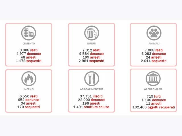 A completare il quadro, un fatturato dell’ecomafia che sale a quota 14,1 miliardi, una crescita del 9,4%, dovuta soprattutto alla lievitazione nel ciclo dei rifiuti, nelle filiere agroalimentari e nel racket animale.