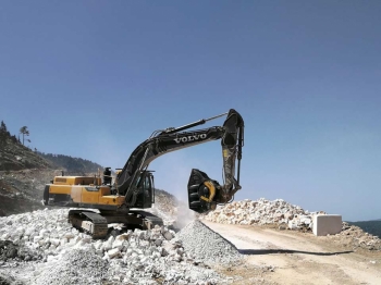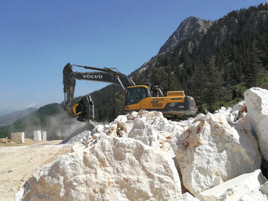 Anche le attrezzature MB Crusher lavorano il marmo. Installate su escavatori, pale o terne già presenti in cantiere, frantumano, vagliano o movimentano le pietre che saranno poi riutilizzate in diversi contesti produttivi.
