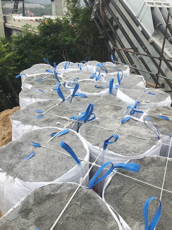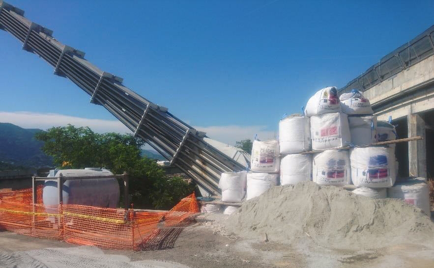 Sono stati installati ponteggi con le reti di protezione e anche le cosiddette "vesciche" piene d'acqua che sono state posizionate sulle "gambe" delle pile, le "vesciche" sono considerate la prima barriera per mitigare le polveri proprio perché applicate in prossimità dei fori da mina dentro ai quali saranno posizionate le cariche esplosive. Si prevede di utilizzarne circa 4000.