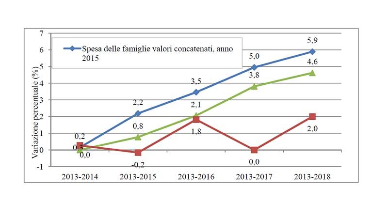 Si osserva che nel 2018 l’andamento dei rifiuti è andato di pari passo con quello degli indicatori socio-economici. Tutti in crescita, quindi, i valori del PIL, della spesa per consumi finali delle famiglie residenti e non residenti, e della produzione di rifiuti. Cosa che non era accaduta nel 2017, quando si era verificato un disallineamento tra gli indicatori.
