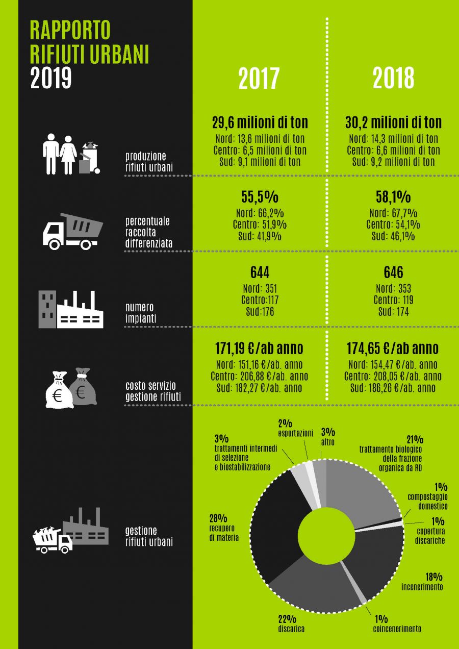 Ispra presenta il Rapporto Rifiuti Urbani ed. 2019, contenente gli ultimi dati disponibili a livello nazionale relativi al 2018. Quanti sono, come li raccogliamo e li trattiamo, in quali impianti finiscono e quanto costa la gestione dei rifiuti urbani agli italiani.