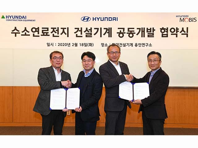 Hyundai Construction Equipment ha recentemente deciso di unire le forze con Hyundai Motor Group per sviluppare la prima macchina da costruzione al mondo alimentata a idrogeno. Lo scorso febbraio, Hyundai Construction Equipment ha firmato un memorandum di intesa (MOU) concernente lo sviluppo congiunto di macchine da costruzione a celle a combustibile a idrogeno con Hyundai Motors e Hyundai Mobis presso il proprio Centro di ricerca, Mabuk Research Center, in Yongin-si, Gyeonggi-do. Nei prossimi anni, le tre società proveranno a sviluppare congiuntamente carrelli elevatori a forche ed escavatori di capacità media/grande azionati a idrogeno.
