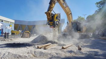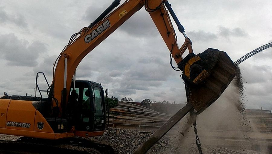 Con le unità MB Crusher pali, cemento armato e traversine si frantumano e riciclano direttamente in cantiere.