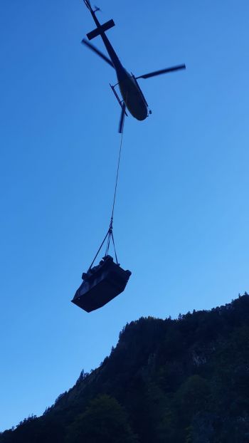 Lo scenario sono le Alpi Bavaresi: un rifugio a 1844 metri, punto di partenza di un sentiero escursionistico di lunga percorrenza, doveva essere in gran parte demolito e ricostruito. Il materiale risultante dalla demolizione avrebbe dovuto essere portato in valle, con costi elevati di trasporto e smaltimento.