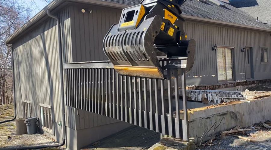 Nello stato di New York una casa è letteralmente crollata a causa di una grossa nevicata.Il tetto della casa non ha retto il peso della neve e, crollando, ha distrutto tutto il porticato. Non rimaneva quindi che smantellare ciò che restava e ricostruire l’abitazione. Con un John Deere 180G e una pinza MB-G1200, l’azienda incaricata dei lavori haselezionato il legnamee lo ha messo a cumulo in un camion, mentre in un altro ha depositato tutto il cemento.