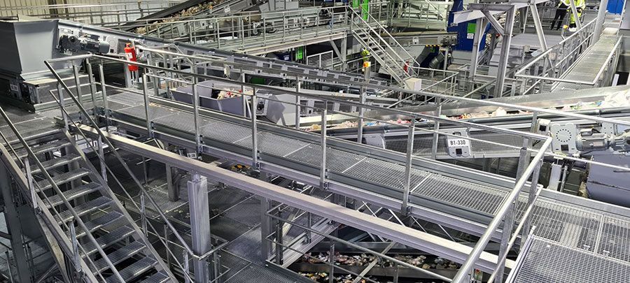 Il progetto ha richiesto la mentalità innovativa che è il segno distintivo dei team di progettazione di STADLER: "Questo finora è stato il progetto più grande per noi, con 272 nastri trasportatori installati che riempiono il capannone su cinque livelli e sono sostenuti da oltre 1.000 tonnellate di strutture metalliche", spiega Wolfgang Köser, uno dei responsabili del progetto. "Per raggiungere l'alta qualità di selezione che PreZero stava cercando, abbiamo dotato questo impianto di tecnologia all'avanguardia", aggiunge Benny Kalmbach, un altro resonsabile del progetto. "La teconologia impiegata comprende 38 selettori ottici NIR (spettro del vicino infrarosso), i nostri separatori balistici e la selezione secondaria assistita da robot".