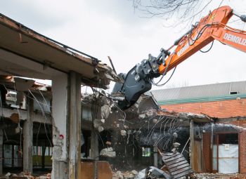 Al lavoro per la demolizione della struttura il frantumatore rotativo VTN FP 40. Rapido e produttivo, il frantumatore girevole della serie FP è progettato per affrontare sia la demolizione primaria che secondaria.