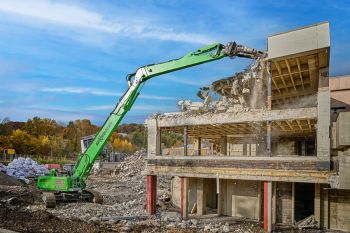 Ferraro è coinvolta nella demolizione di diversi vecchi edifici scolastici. Dal 2015 prosegue il mega progetto con la decostruzione e ricostruzione del polo scolastico. Con un'altezza dell'edificio di circa 16,5 m, il lavoro è fatto su misura per l'830 Demolition di SENNEBOGEN, che vanta un'altezza di sbraccio fino a 19 m a seconda dell'attrezzatura. L'escavatore da demolizione compatto è specializzato nella demolizione selettiva di strutture. Ideale sia per la demolizione primaria in altezza, che in quella secondaria a terra. Il calcestruzzo demolito viene recuperato in cantiere: circa il 70% del calcestruzzo demolito viene frantumato in loco e riciclato in nuove costruzioni al posto di ghiaia e sabbia, salvaguardando l'ambiente.