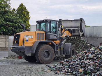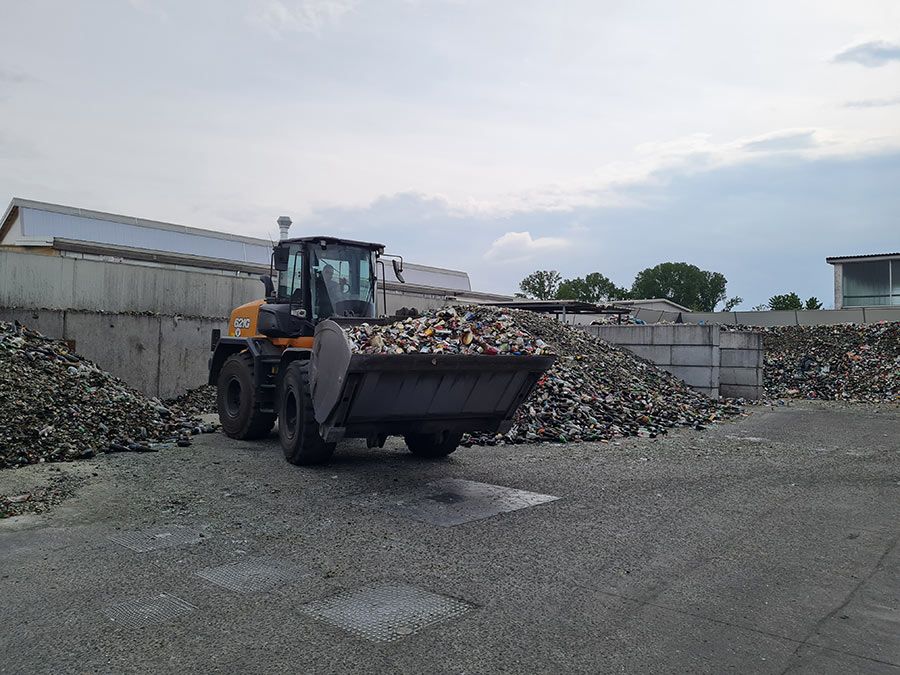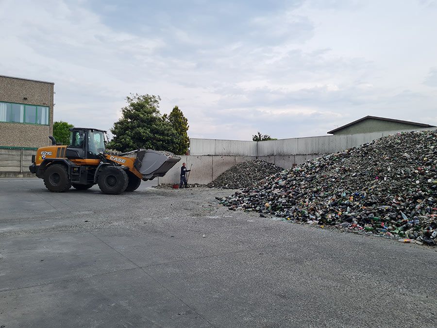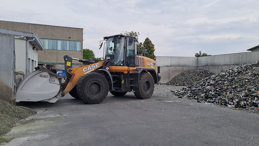 Nell’impianto del riciclo del vetro di Liscate, in provincia di Milano, la movimentazione e l’alimentazione dell’impianto sono affidate a due pale Case serie G.