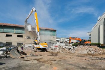 L'escavatore DX530DM, il "gigante" da demolizione di Doosan, ancora una volta è stato ritenuto il mezzo più idoneo per un importante abbattimento: la demolizione top down di una vecchia porzione di fabbrica dello storico stabilimento della nota azienda meccanica Brugola OEB Industriale S.p.a. di Lissone, leader mondiale nella produzione di viti critiche e componenti di fissaggio per il settore automotive.