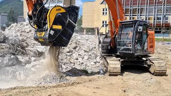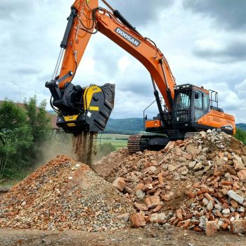 Ma che dire di altri materiali da costruzione? Come ad esempio i mattoni. Sappiamo che sono riciclabili, ma richiedono una lavorazione più lunga, giusto? In realtà no. Come nell'esempio precedente, con la giusta attrezzatura è possibile svolgere facilmente compiti apparentemente difficili. Come il nostro cliente, che ha acquistato la benna frantoio BF120.4 e ha trasformato il suo escavatore in un centro di riciclaggio, frantumando il suo cumulo mattoni direttamente sul posto.
