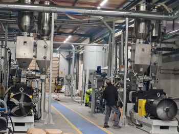 Nella linea dedicata all’estrusione vi è la trasformazione delle scaglie in pellet: la plastica viene fusa, filtrata e raffreddata per formare dei pellet rotondi del diametro di circa 2 mm. In questa fase è possibile aggiungere coloranti o additivi per migliorare le caratteristiche del prodotto: raggiungendo, in questo modo, specifici standard qualitativi richiesti dai clienti.