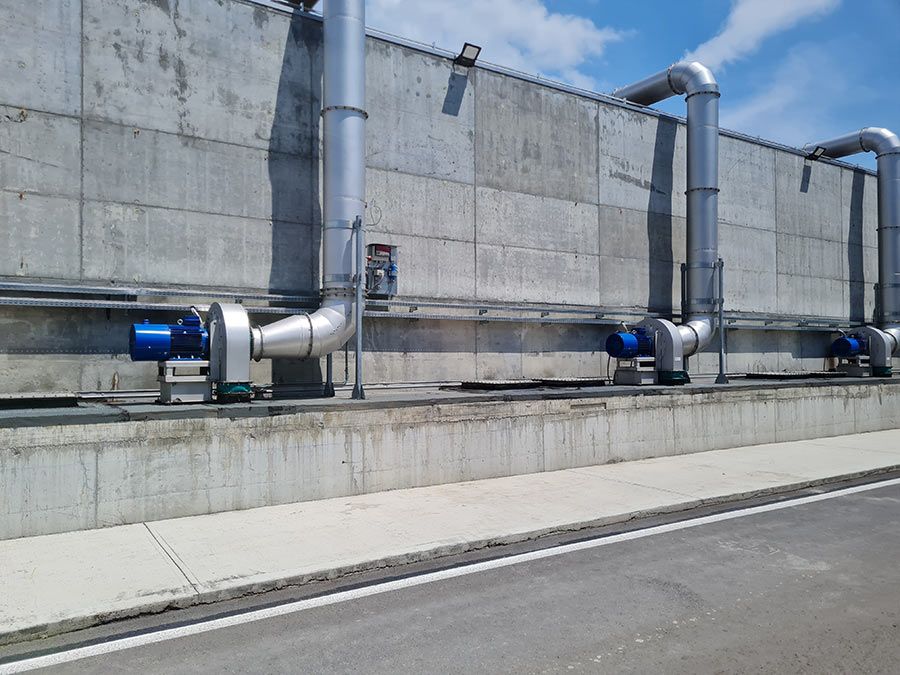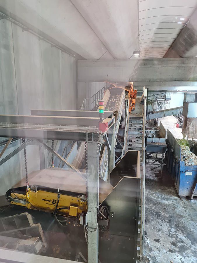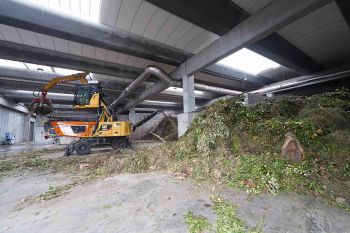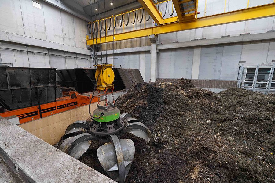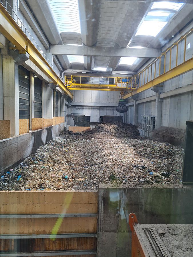 Dopo la fase di pesatura il rifiuto organico viene conferito in una fossa di stoccaggio, la movimentazione del rifiuto viene garantita da una benna a polipo a funzionamento semi automatico. In una zona della stessa fossa viene conferita una parte del rifiuto verde, utilizzato in percentuale in miscelazione con il rifiuto organico da inviare nella successiva fase di digestione. La fase di pretrattamento per la eliminazione dei rifiuti non compostabili viene effettuata su due linee parallele. Al termine del pretrattamento la componente organica e la quota di rifiuto verde viene inviata in una fossa di stoccaggio, qui una benna a polipo a funzionamento automatico rifornisce il sistema di alimentazione alla digestione anaerobica