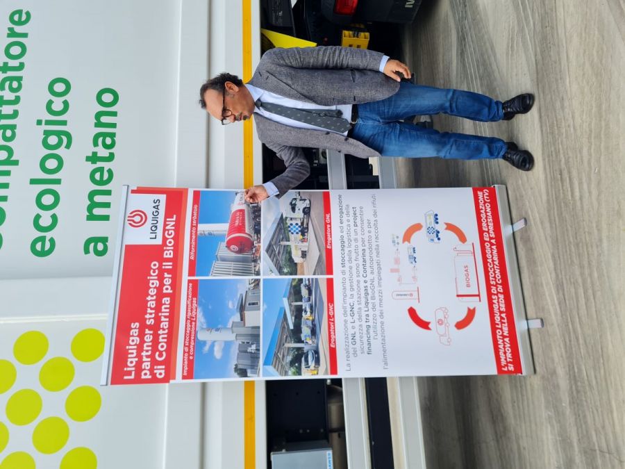 Il bio-GNL viene trasportato da Liquigas nella sede di Contarina a Spresiano: qui è situato l’impianto interno di rifornimento del biometano, che viene usato per alimentare tutti i 226 mezzi a metano che l’azienda impiega nella raccolta dei rifiuti sul territorio.