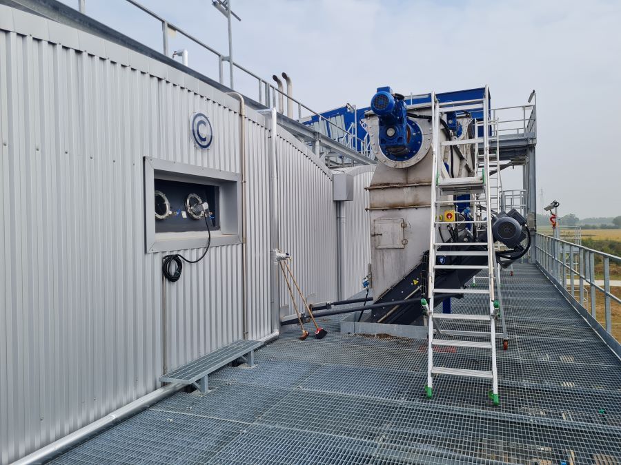 Nella torre di lavaggio si elimina l’idrogeno solforato, poi il vapore acqueo viene condensato e convogliato all’impianto di trattamento delle acque. Una batteria di filtri a carboni attivi rimuove i COV e gli eventuali residui di idrogeno solforato. Infine, l’anidride carbonica viene rimossa con un sistema di filtrazione a membrane e liberata in atmosfera tramite un camino regolarmente autorizzato (off-gas), senza impatto nell’emissione di gas serra, data l’origine biogenica dell’anidride carbonica.