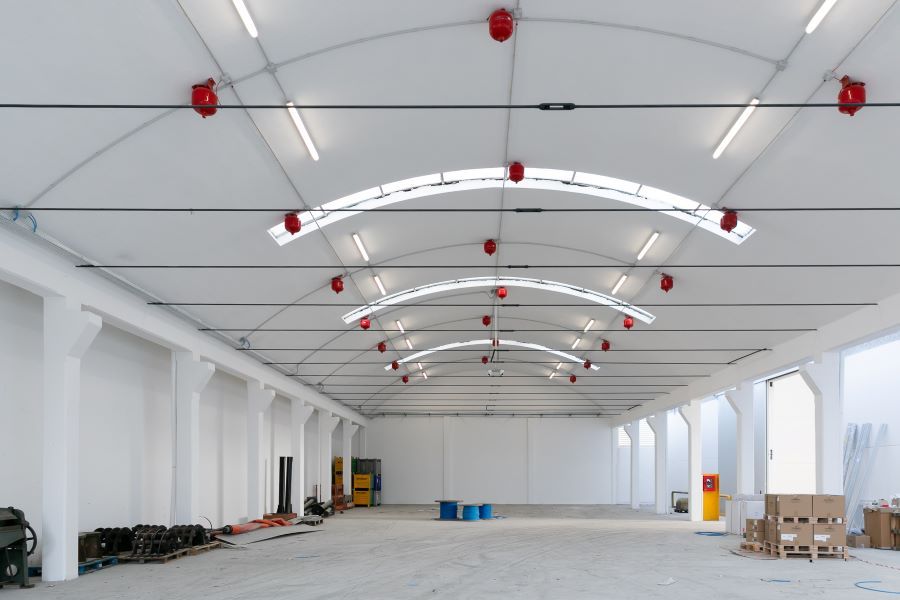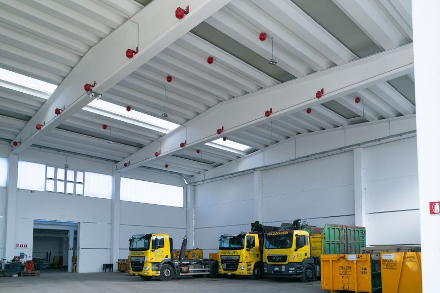 3. I sensori di fiamma, presenti in ogni capannone e che rilevano il fuoco, attivano un sistema di spegnimento automatico che prevede lo scarico di un estinguente di tipo gassoso non tossico ed ecologico capace di interrompere la combustione e soffocare il legame tra comburente e combustibile. La soluzione adottata è capace di spegnere le fiamme senza erogazione di acqua, il cui utilizzo, diversamente, potrebbe generare problematiche per la presenza di quadri elettrici. Il sistema di spegnimento automatico evita dunque lo spreco di acqua (in un caso di questo tipo stimato in almeno 280mila litri), risorsa fondamentale per l’uomo e necessariamente da preservare.