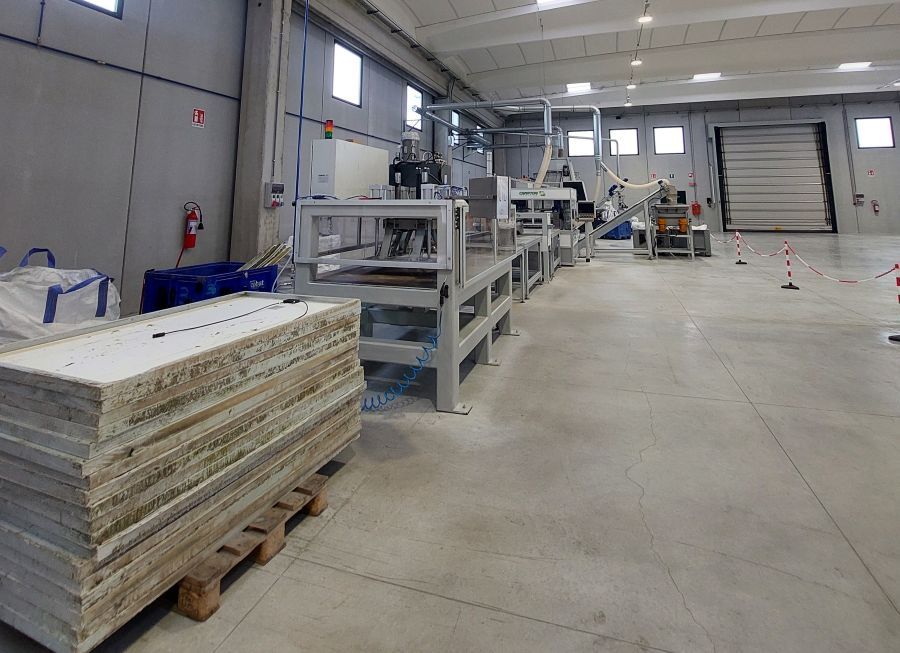 L’impianto si distingue per un elevato tasso di recupero: il 95% delle componenti dei moduli fotovoltaici viene infatti reimmesso nel ciclo produttivo. Il processo prevede lo smontaggio del telaio in alluminio, la devetratura e la successiva separazione del silicio, del rame e dei materiali plastici attraverso trattamenti esclusivamente meccanici.